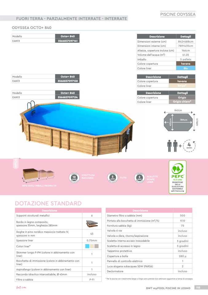 * Per le piscine con rivestimento beige o Grigio sono previste due settimane aggiuntive ai tempi di consegna