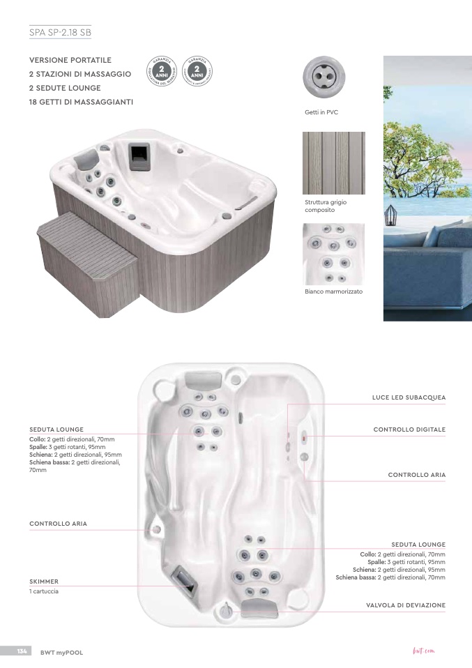 Schiena: 2 getti direzionali, 95mm