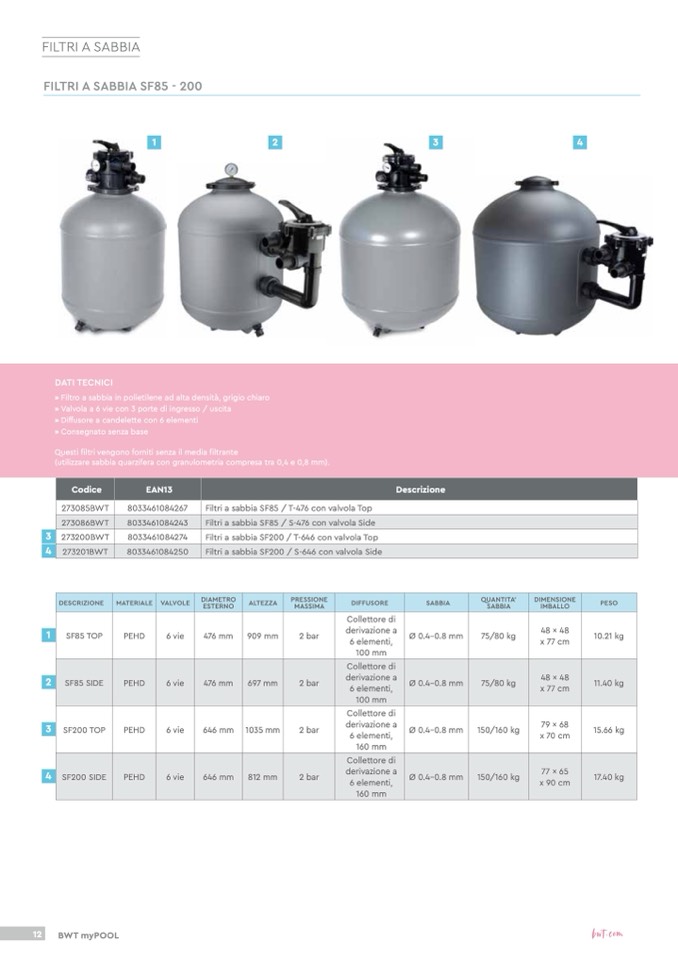 Filtri a sabbia SF85 / S-476 con valvola Side