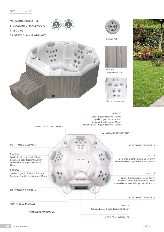 Spalle: 2 getti direzionali, 95mm