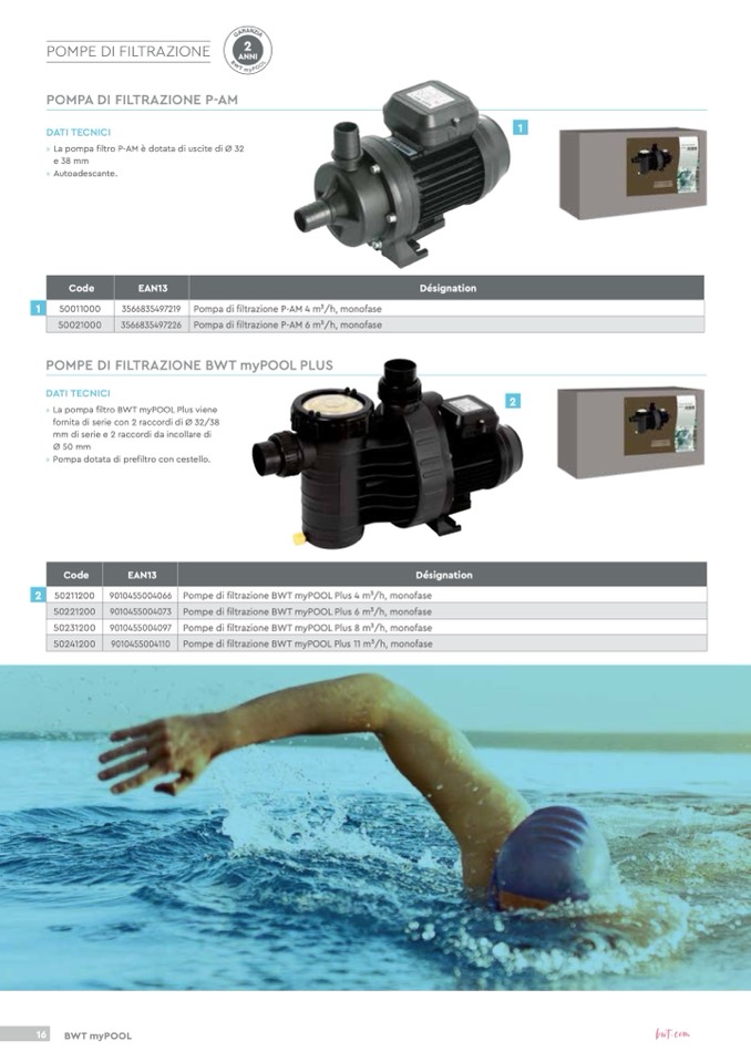 Pompe di filtrazione BWT myPOOL Plus 4 m3/h, monofase