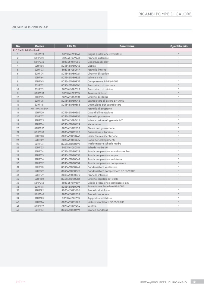 RICAMBI BP90HS-AP