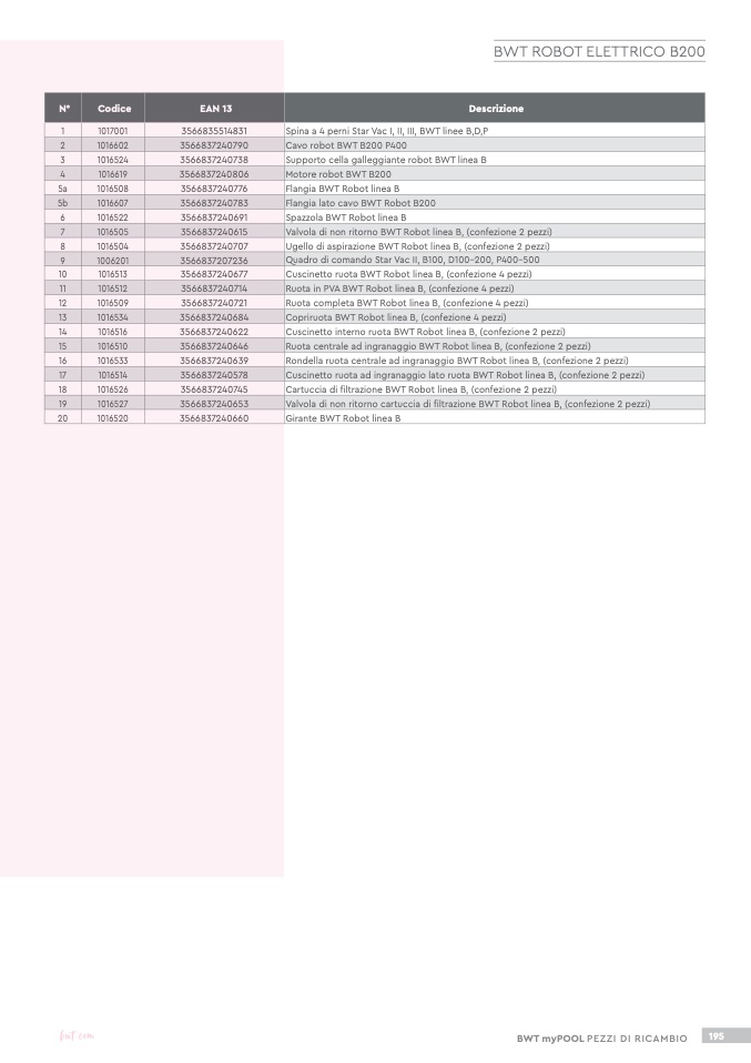 Cuscinetto ruota BWT Robot linea B, (confezione 4 pezzi)