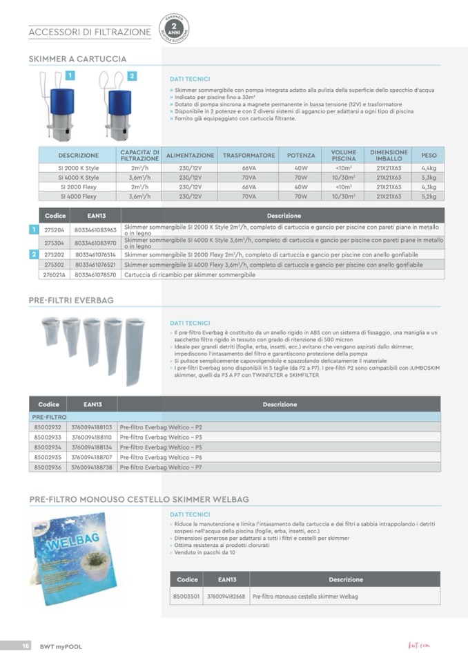 85003501 3760094182668 Pre-filtro monouso cestello skimmer Welbag