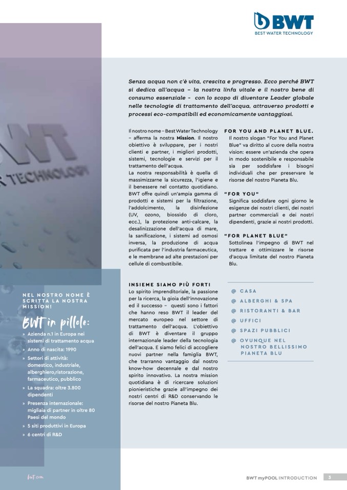 nelle tecnologie di trattamento dell’acqua, attraverso prodotti e