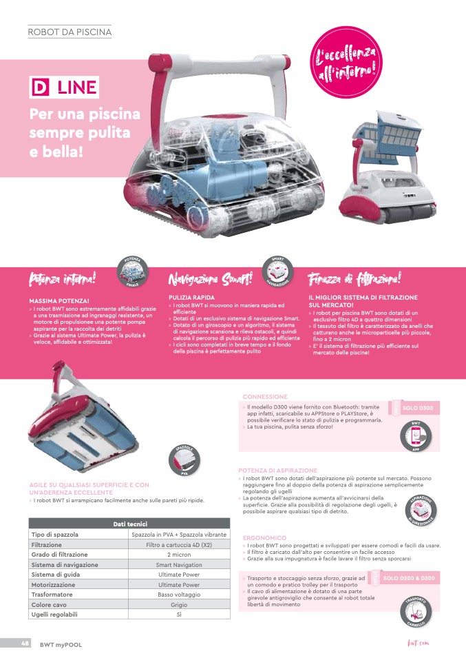 » I robot BWT sono dotati dell'aspirazione più potente sul mercato. Possono