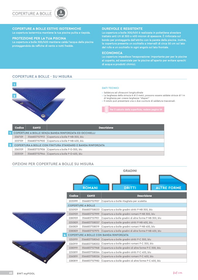 al coperto, ed essenziale per le piscine all'aperto per evitare sprechi