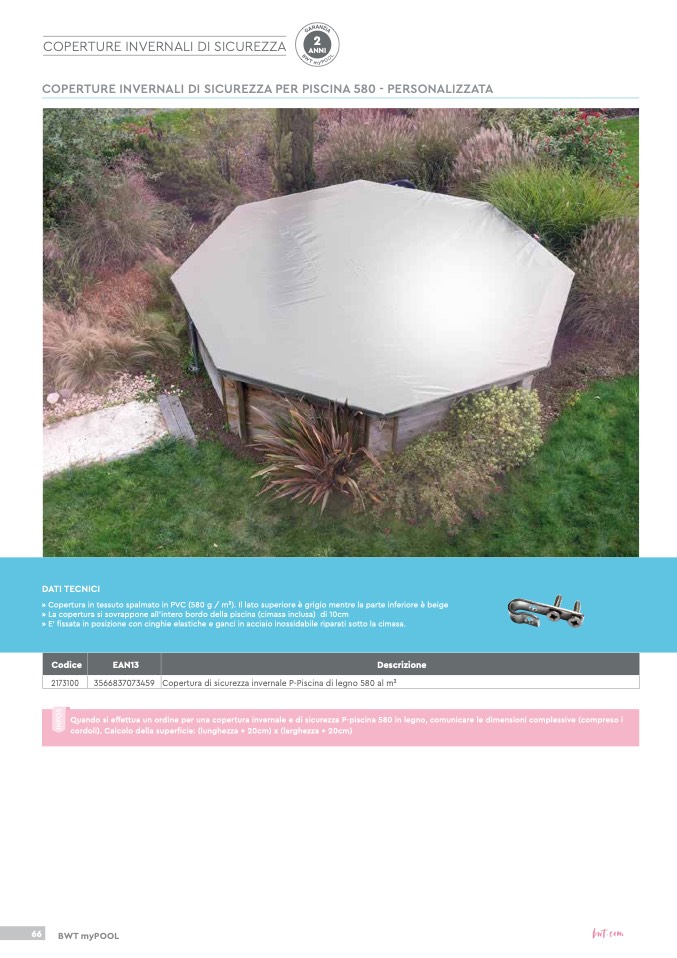 Quando si effettua un ordine per una copertura invernale e di sicurezza P-piscina 580 in legno, comunicare le dimensioni complessive (compreso i