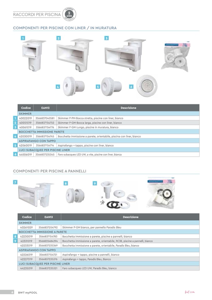 42030019 3566837154745 Bocchetta immissione a parete, orientabile, piscina con liner, bianco