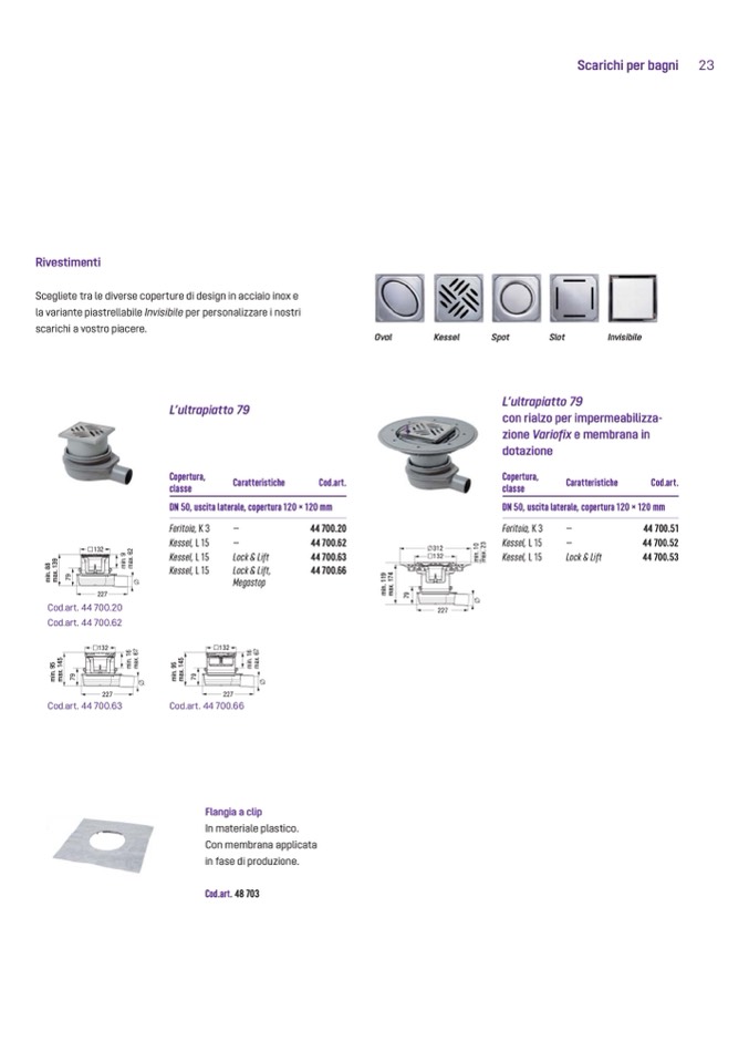 DN 50, uscita laterale, copertura 120 × 120 mm