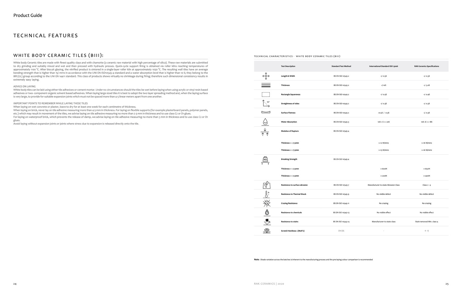TECHNICAL CHARACTERISTICS - WHITE BODY CERAMIC TILES (BIII)