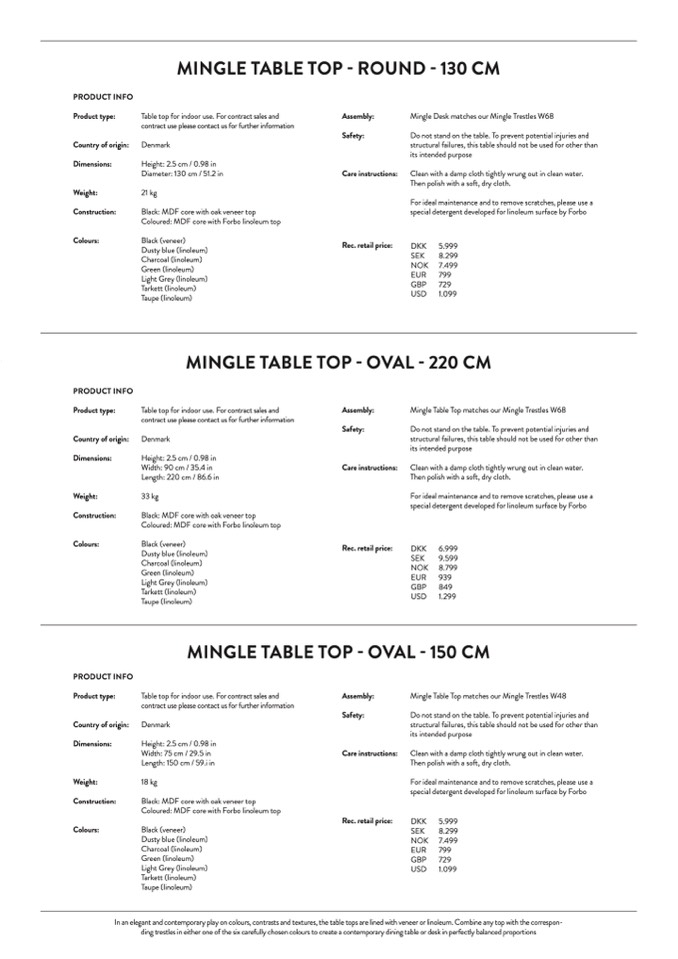 In an elegant and contemporary play on colours, contrasts and textures, the table tops are lined with veneer or linoleum. Combine any top with the correspon-