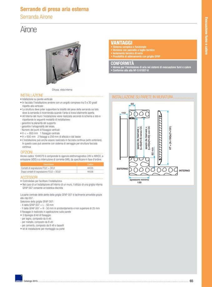 Nel caso di un’installazione all’interno di un muro, l’utilizzo di una griglia interna