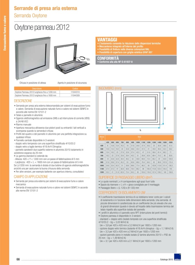 Serranda di evacuazione naturale fumo e calore nei sistemi SENFC in accordo