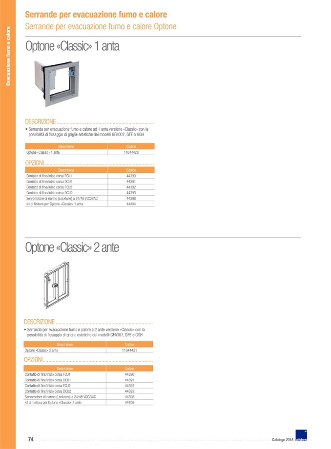 Serranda per evacuazione fumo e calore a 2 ante versione «Classic» con la