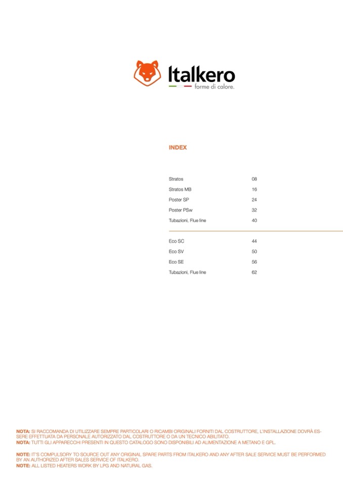 NOTA: tuttI gLI appaRecchI pReSentI In QueStO cataLOgO SOnO dISpOnIbILI ad aLIMentazIOne a MetanO e gpL.