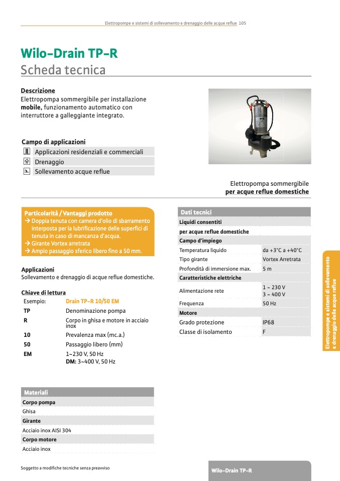 Elettropompe e sistemi di sollevamento e drenaggio delle acque reue 105