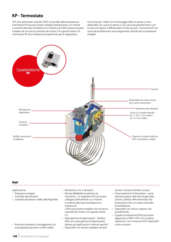 I KP sono termostati unipolari SPDT comandati dalla temperatura.