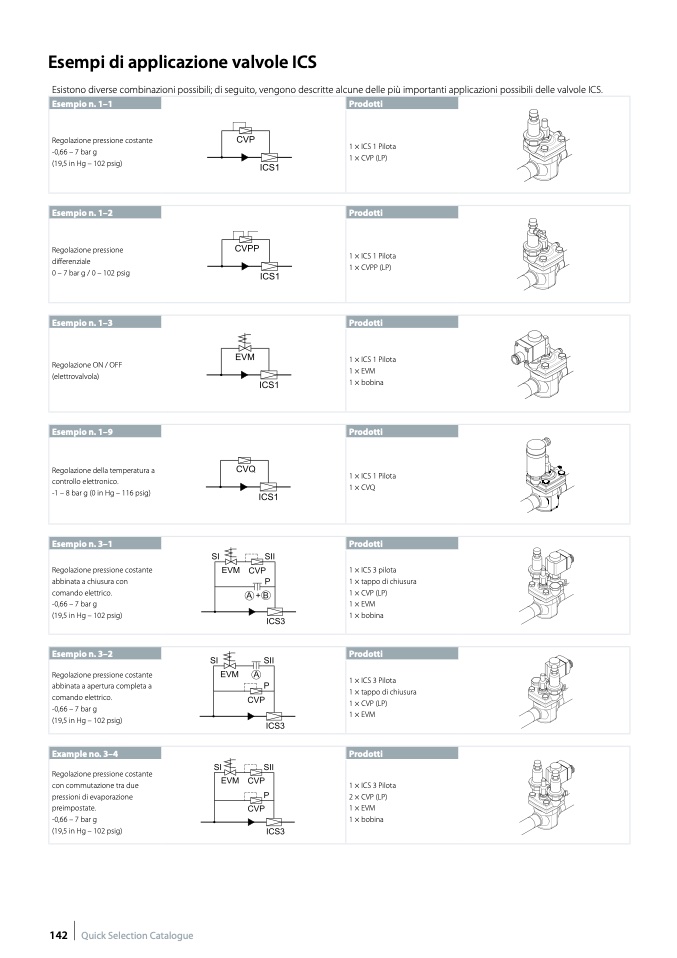 Esistono diverse combinazioni possibili; di seguito, vengono descritte alcune delle più importanti applicazioni possibili delle valvole ICS.