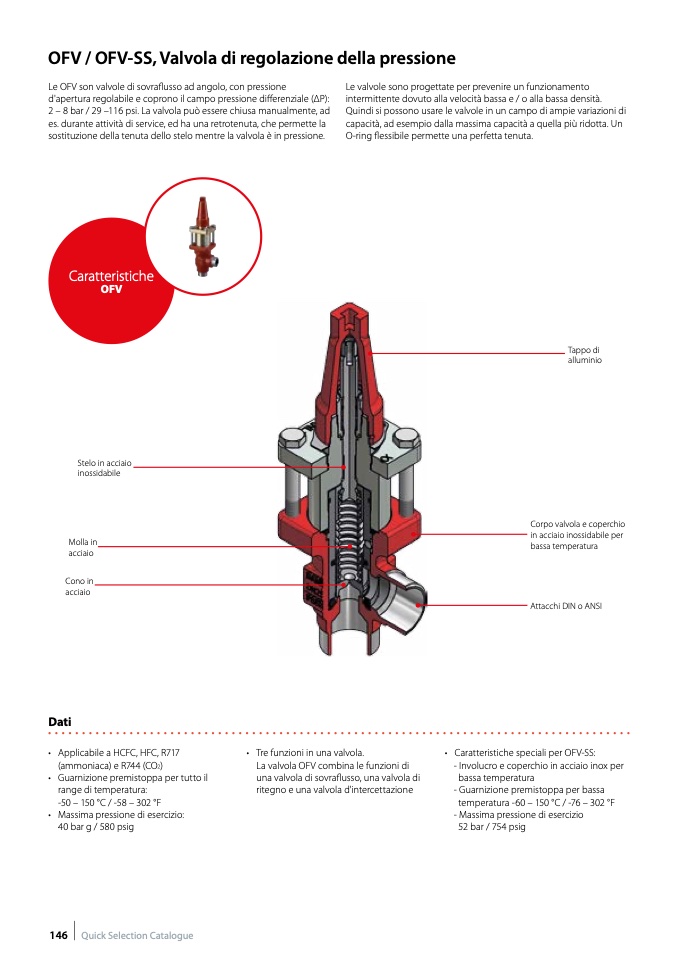Le OFV son valvole di sovraflusso ad angolo, con pressione