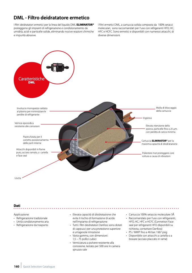 • Tutti i filtri deidratatori Danfoss sono dotati