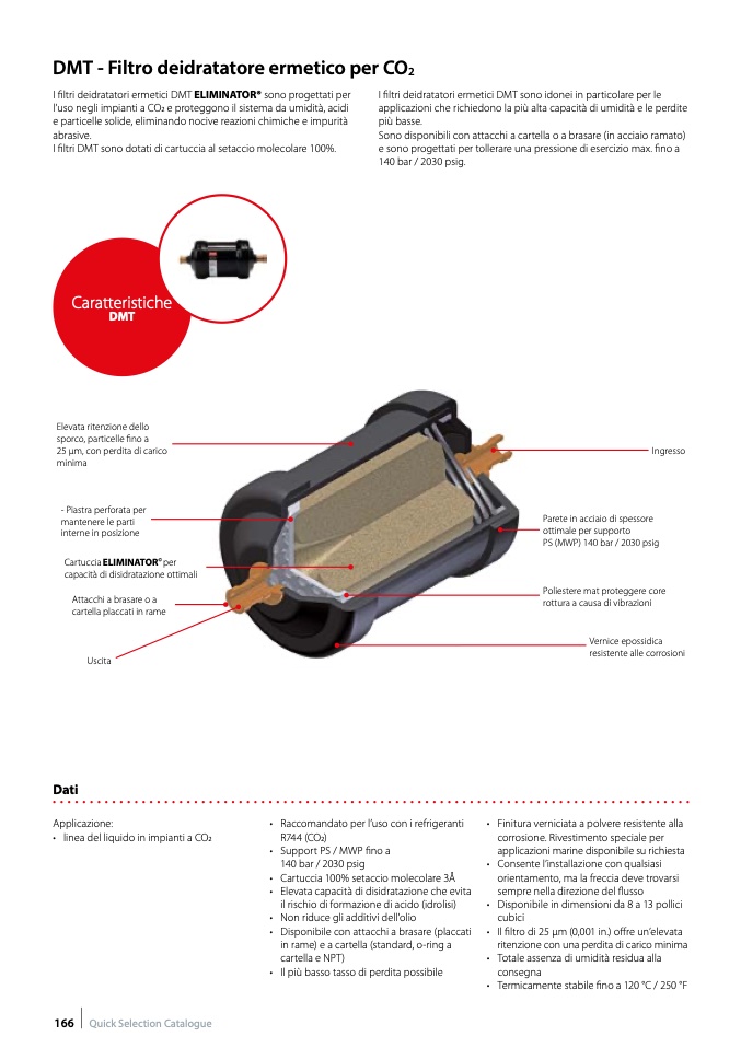 I filtri DMT sono dotati di cartuccia al setaccio molecolare 100%.