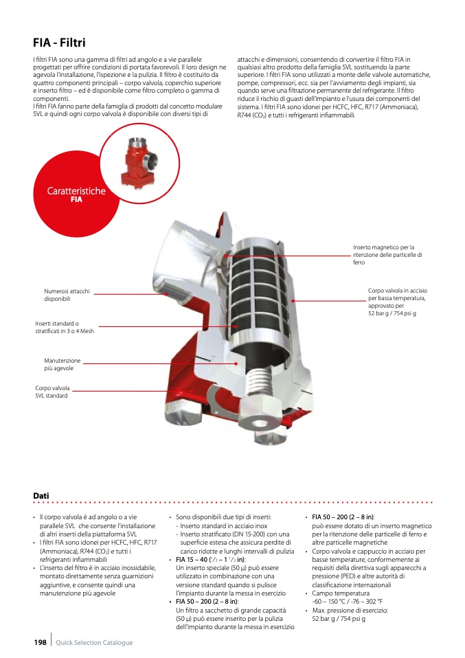 superiore. I filtri FIA sono utilizzati a monte delle valvole automatiche,