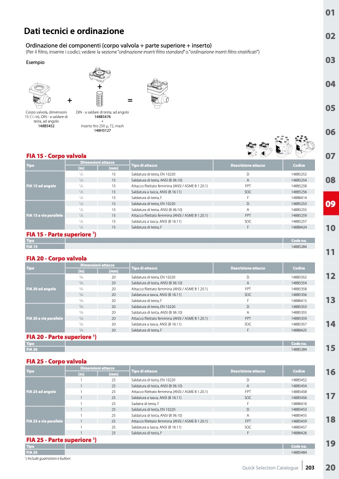 (Per il filtro, inserire i codici; vedere la sezione “ordinazione inserti filtro standard” o “ordinazione inserti