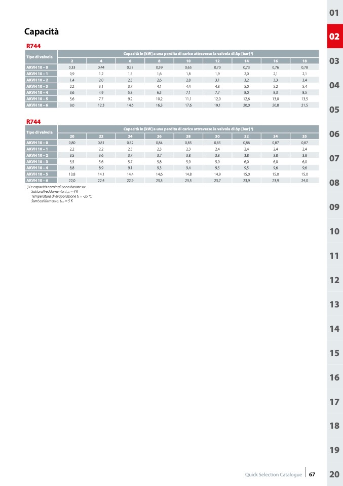 Capacità in [kW] a una perdita di carico attraverso la valvola di Δp [bar] 1)