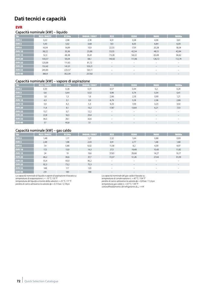 La capacità nominale di liquido e vapore di aspirazione è basata su: