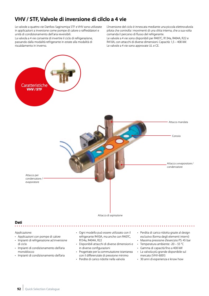 Le valvole a 4 vie sono disponibili per R407C, R134a, R404A, R22 e