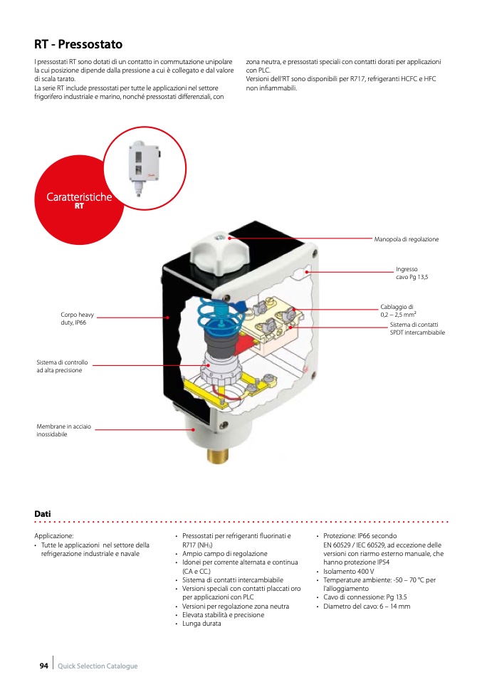 La serie RT include pressostati per tutte le applicazioni nel settore