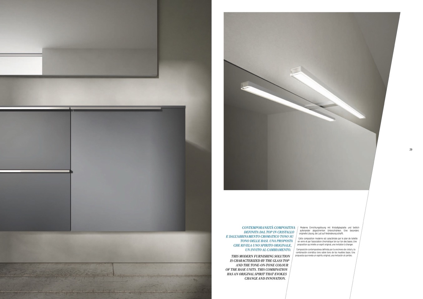Cette composition moderne est caractérisée par le plan de toilette