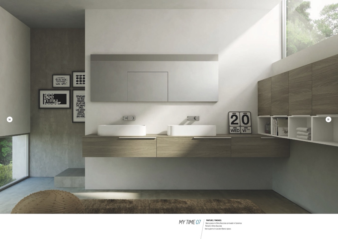 Basi e piano in Olmo Nocciola con lavabi in Ceramica