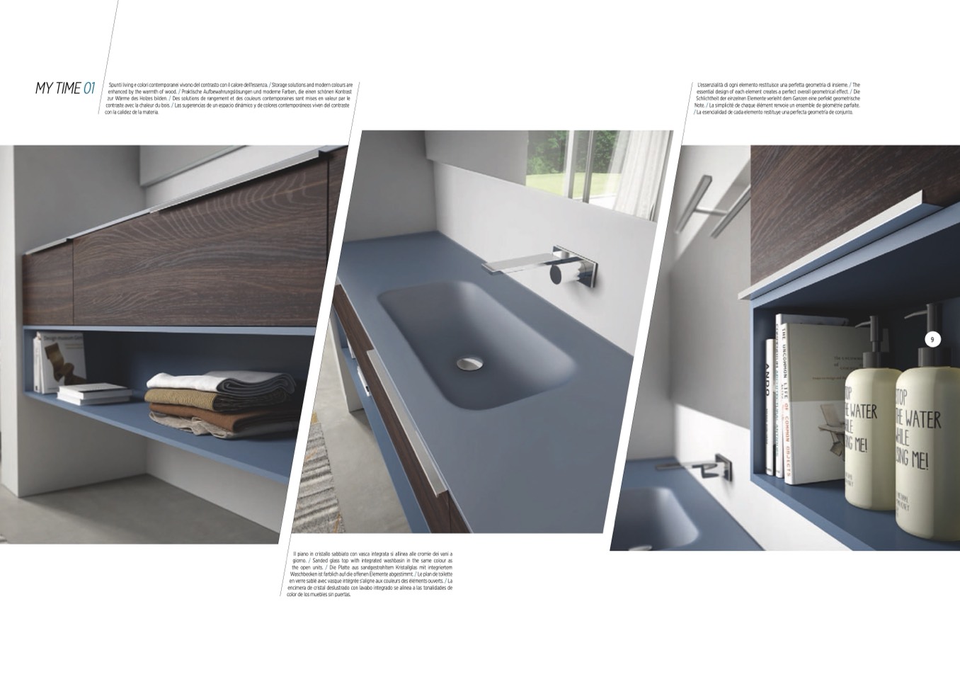 Spunti living e colori contemporanei vivono del contrasto con il calore dell’essenza. / Storage solutions and modern colours are