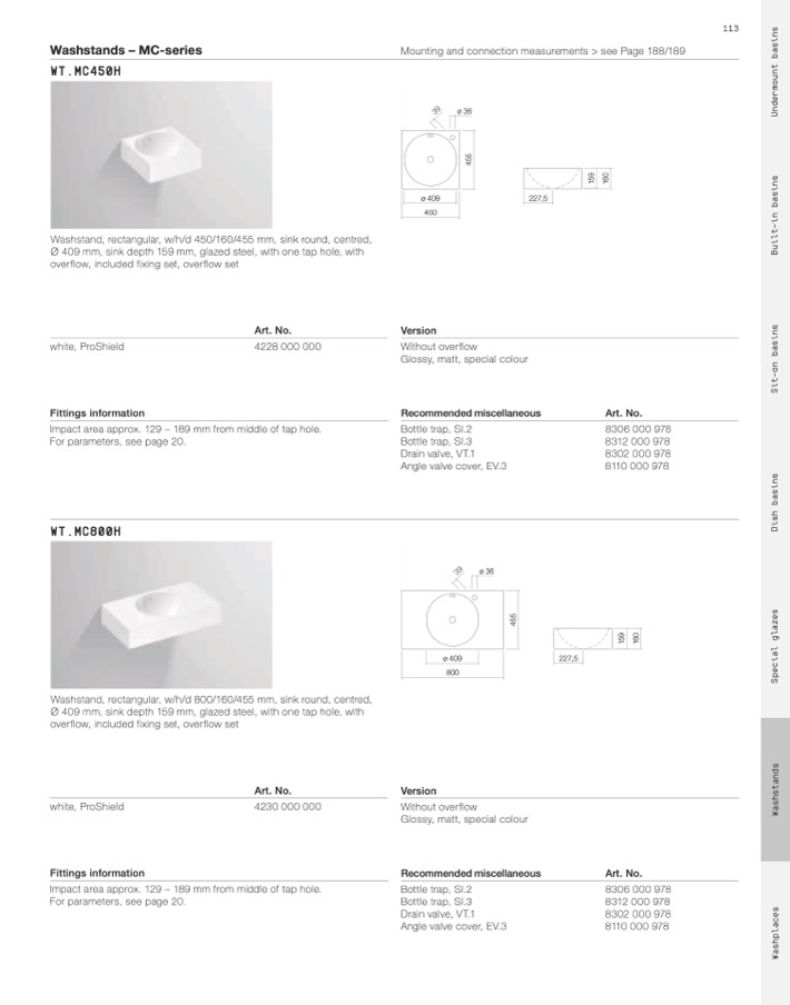 Washstand, rectangular, w/h/d 800/160/455 mm, sink round, centred,