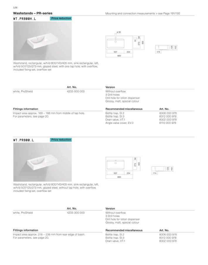 Washstand, rectangular, w/h/d 800/143/405 mm, sink rectangular, left,