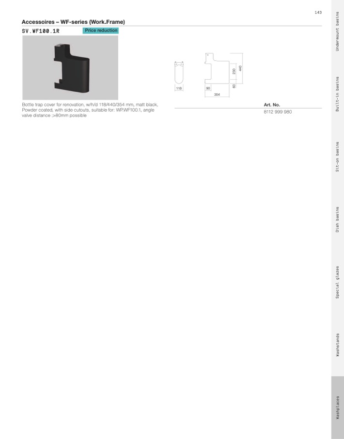Powder coated, with side cutouts, suitable for: WP.WF100.1, angle