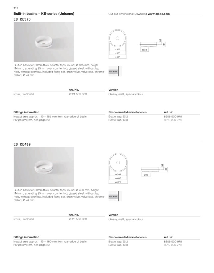 Built-in basins – KE-series (Unisono)