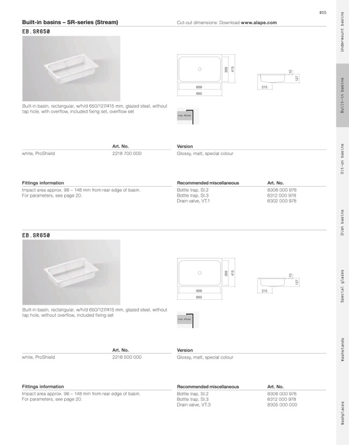 Built-in basins – SR-series (Stream)