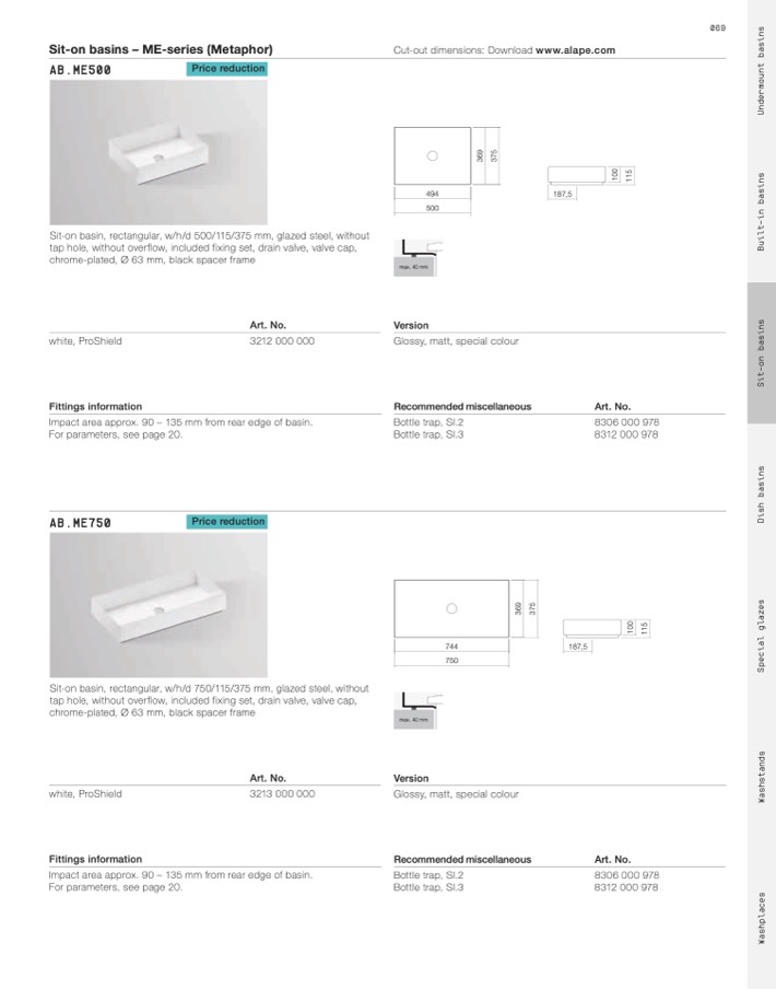 Cut-out dimensions: Download www.alape.com