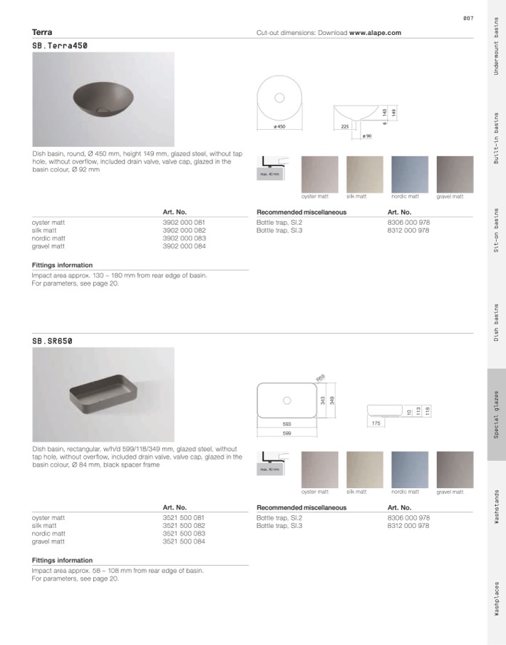 Impact area approx. 130 – 180 mm from rear edge of basin.