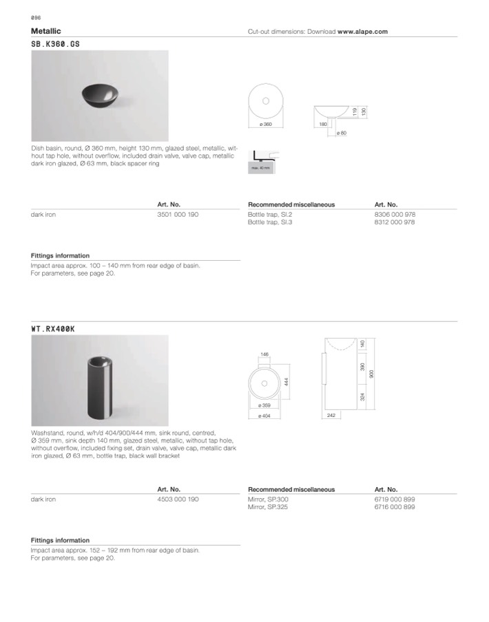 Washstand, round, w/h/d 404/900/444 mm, sink round, centred,