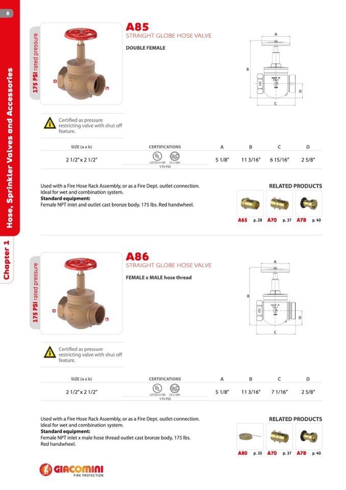 Female NPT inlet and outlet cast bronze body, 175 lbs. Red handwheel.
