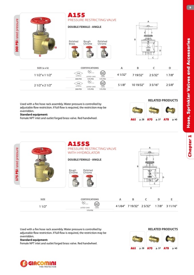 Used with a fire hose rack assembly. Water pressure is controlled by