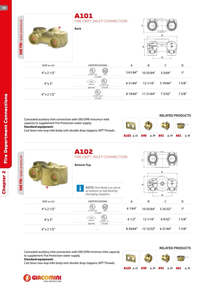 Concealed auxiliary inlet connection with 500 GPM minimun inlet capacity