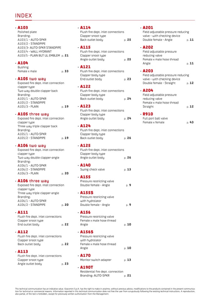 This technical communication has an indicative value. Giacomini S.p.A. has the right to make in anytime, without previous advice, modifications to the products contained in the present communica-