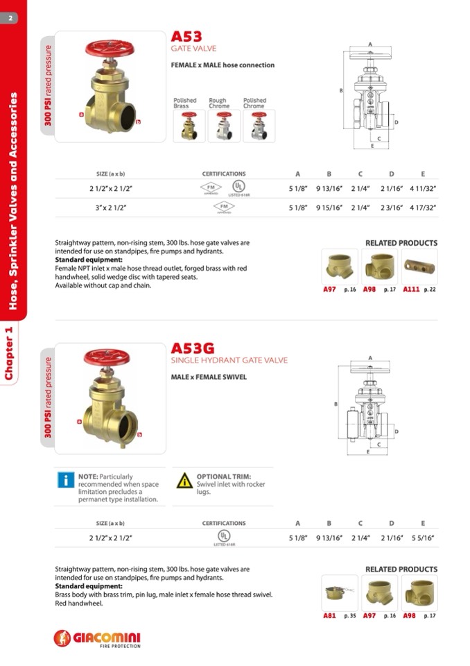 Straightway pattern, non-rising stem, 300 lbs. hose gate valves are