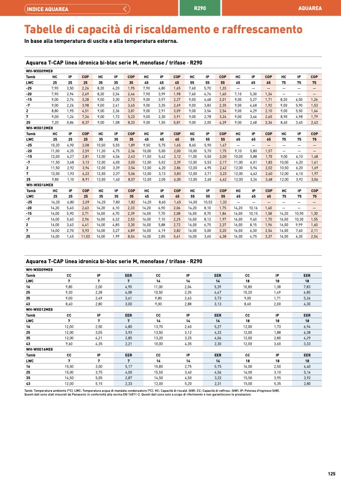 Questi dati sono stati misurati da Panasonic in conformità alla norma EN 14511-2. Questi dati sono solo a scopo di riferimento e non garantiscono le prestazioni.