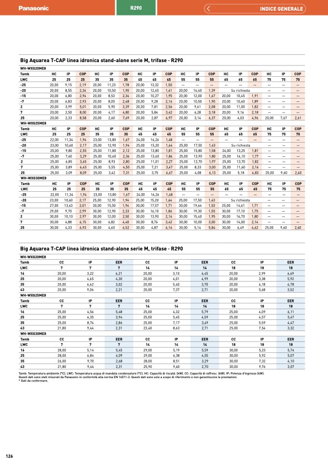 Questi dati sono stati misurati da Panasonic in conformità alla norma EN 14511-2. Questi dati sono solo a scopo di riferimento e non garantiscono le prestazioni.